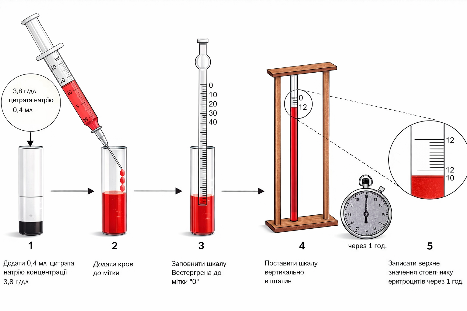 - Через 60 хвилин зафіксувати рівень осідання еритроцитів².