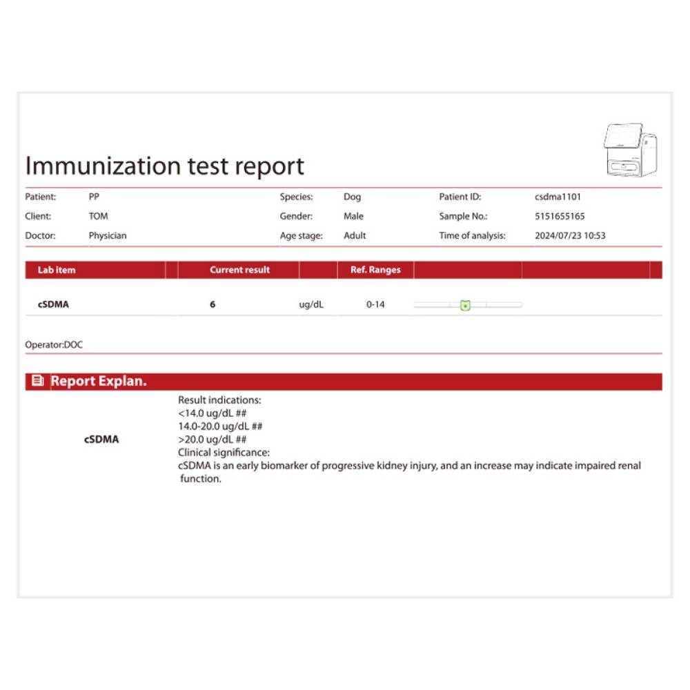 | Ниркові маркери | cSDMA (Симетричний диметиларгінін собак) fSDMA (Симетричний диметиларгінін котів) |
