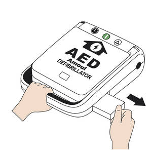 Забезпечує джерело живлення для дефібрилятора (самотестування запуститься відразу після встановлення акумулятора)