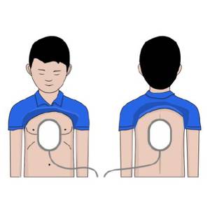 4. Зніміть задню обкладинку електрода та встановіть два електроди на зазначеному положенні пацієнта.
