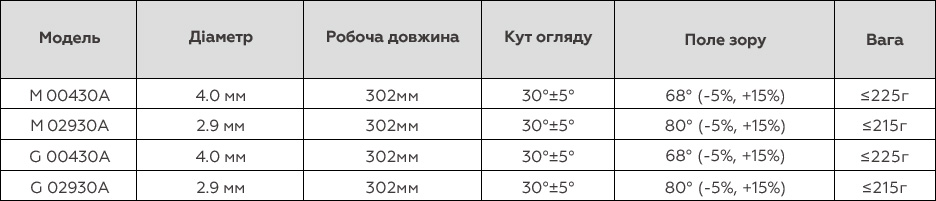 Моделі жорстких ендоскопів Mindray: