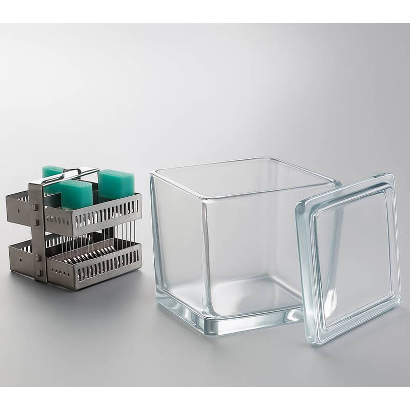 Комплект для фарбування Labexpert — включає скляну ємкість і штатив-тримач, розрахований на одночасне фарбування до 20 предметних скелець.