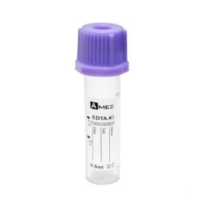 Мікропробірка для крові AMED 0,25 мл — стерильна одноразова пробірка з антикоагулянтом EDTA K3 для зручного та безпечного забору невеликої кількості крові (упаковка 100 шт).