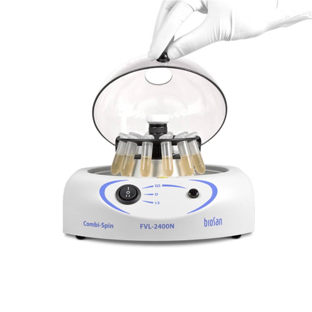 Модель FVL-2400N поєднує функції центрифугування та перемішування завдяки змінним модулям, розташованим на спільному спін-блоці. Це дозволяє ефективно підготувати зразки за мінімальний час і зменшити кількість маніпуляцій оператора.