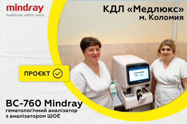 ХЛР поставила в лабораторію гематологічний аналізатор BC-760 Mindray — топовий аналізатор із аналізом ШОЕ та автоматичною подачею зразка.