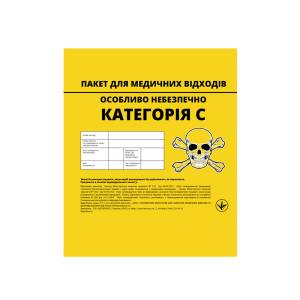 Виготовлені з поліетилену жовтого кольору, пакети мають чітке маркування «Особливо небезпечно» та символ токсикологічної небезпеки. Напис нанесено українською мовою, що забезпечує правильну ідентифікацію в умовах медичних закладів.