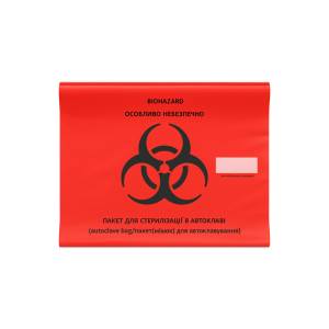 Изготовленные из прочного полиэтилена красного цвета, пакеты имеют чёткую маркировку «Особо опасно» и символ биологической опасности. Надпись выполнена на украинском языке, что обеспечивает корректную идентификацию в медицинских учреждениях.