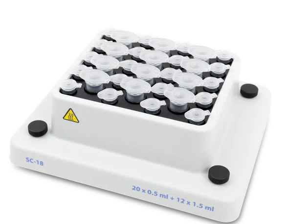 SC-18 – для 20 пробірок об’ємом 0,5 мл та 12 пробірок об’ємом 1,5 мл • Кількість пробірок 0,5 мл: 20 • Кількість пробірок 1,5 мл: 12 • Максимальні оберти: 1400 об/хв • Максимальна температура: 100 °C |