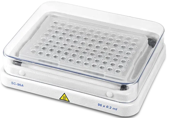 SC-96A – для 96-лункового ПЛР (полімеразна ланцюгова реакція) мікропланшета без спідниці або з напівспідницею (0,2 мл), або 12 стрипів по 8 × 0,2 мл, або 96 пробірок по 0,2 мл • 96-лунковий ПЛР мікропланшет: 1 • Максимальні оберти: 1400 об/хв • Максимальна температура: 100 °C |