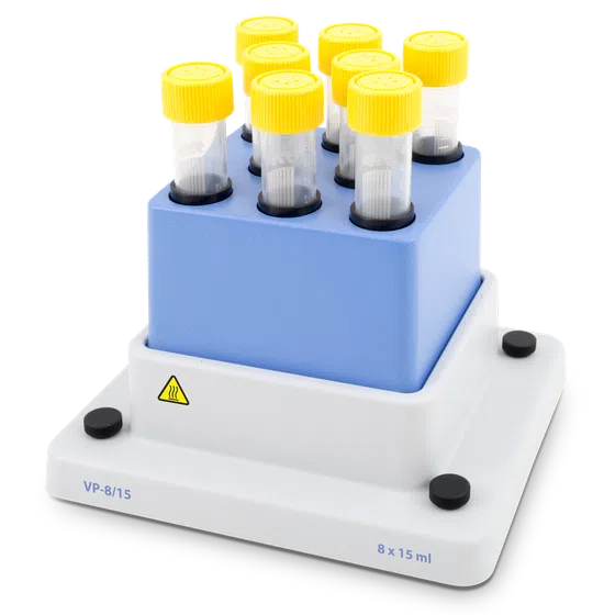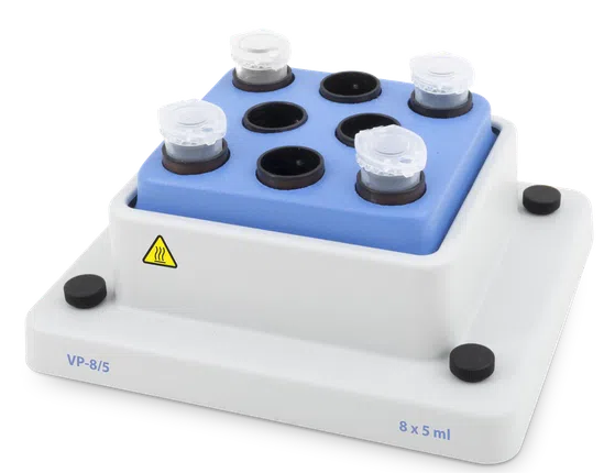 VP-8/5 – для 8 конічних пробірок об’ємом 5 мл • Максимальні оберти: 1200 об/хв • Максимальна температура: 100 °C |