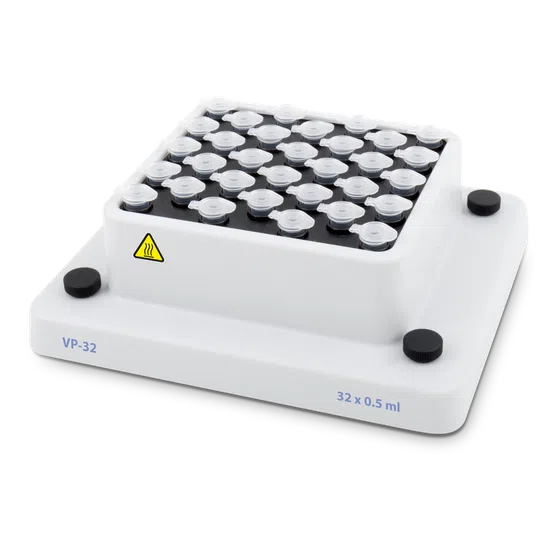 VP-32 – для 32 пробірок об’ємом 0,5 мл • Максимальні оберти: 1400 об/хв • Максимальна температура: 100 °C |