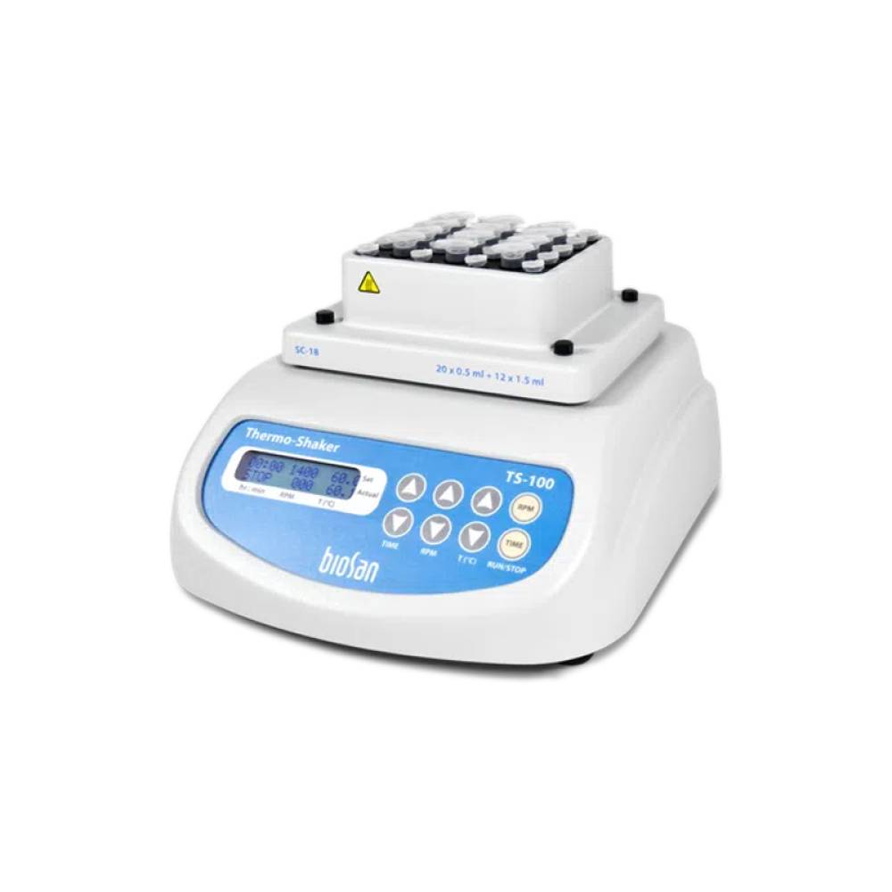 Термошейкер TS-100 — лабораторний прилад для інтенсивного перемішування зразків у мікропробірках з одночасним або незалежним термостатуванням. Поєднує функції шейкера, термостата та термошейкера, що забезпечує універсальність використання в рутинних і дослідницьких лабораторіях.